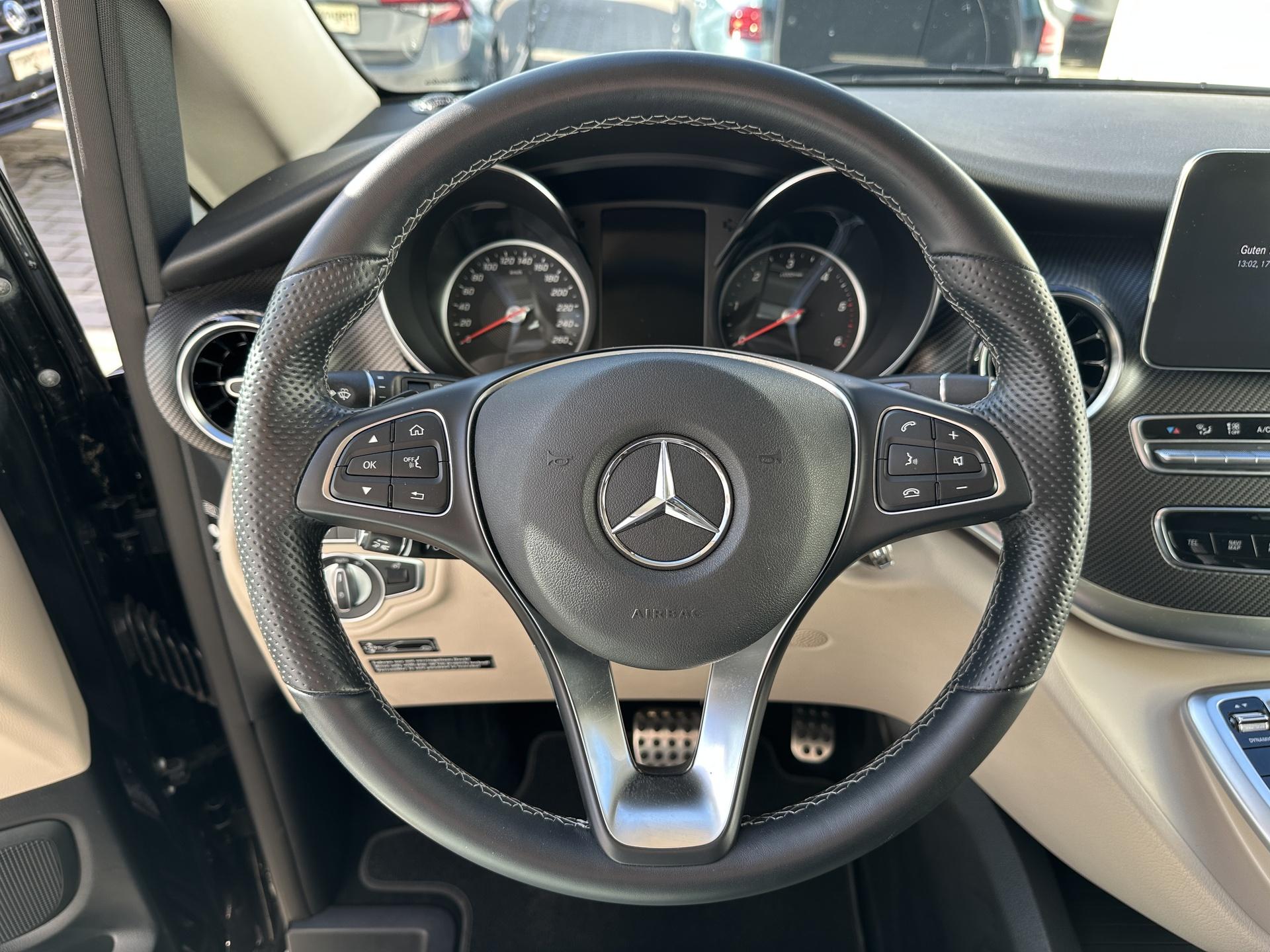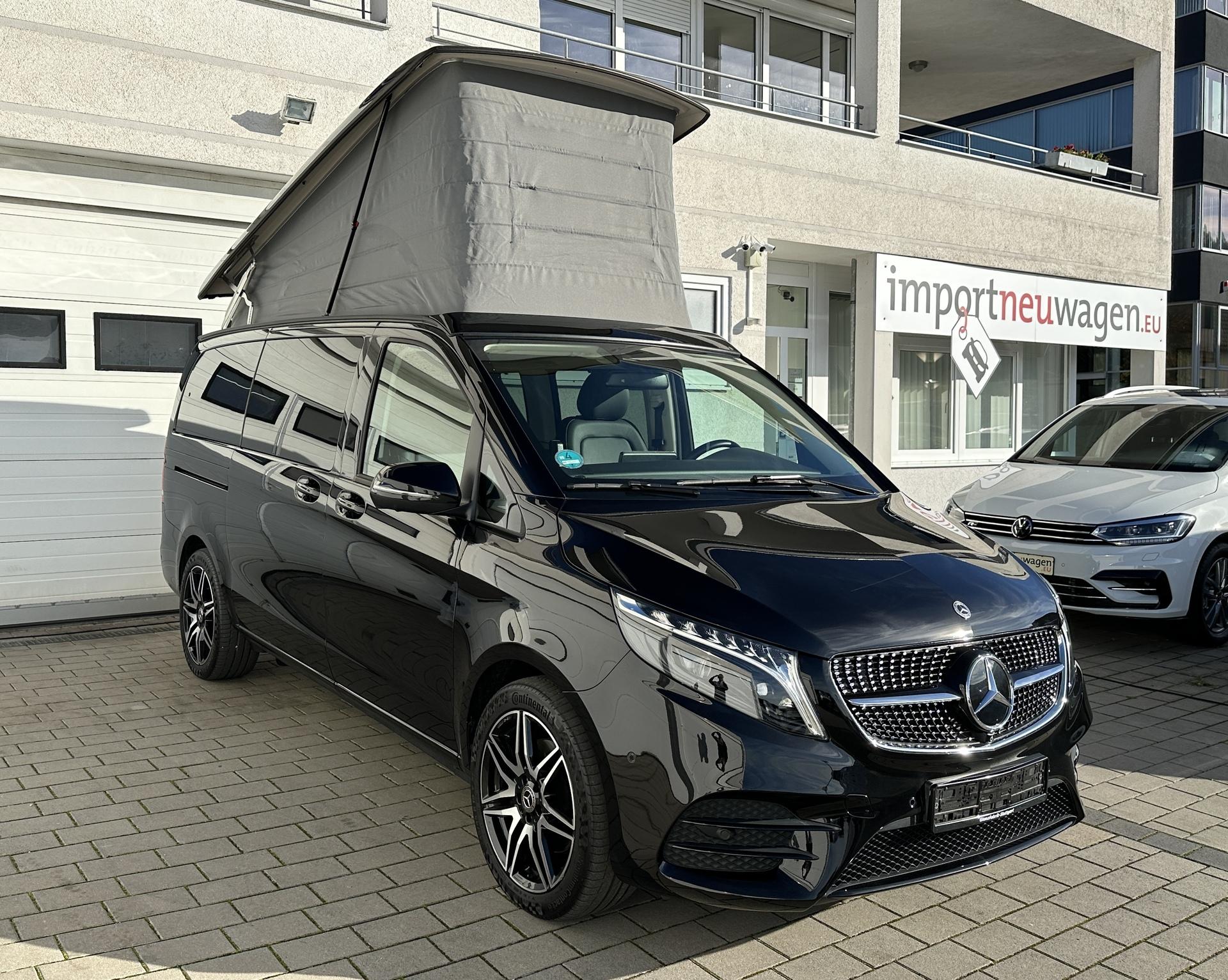 Deutscher Gebrauchtwagen in sehr gepflegtem Zustand - Verkauf im KundenauftragMercedes Benz Marco Polo Edition 300 d 4MATIC 174 kW / 237 PS 9G-Tronic, Euro 6d-ISC-FCM Hauptdaten:- Nicht unfallfrei- 1. Hand- Scheckheftgepflegt- Inspektion noch nicht fällig (erst 05.2026)- Zustand: der Laufleistung und dem Alter entsprechende Gebrauchsspuren vorhandenFarbe: Obsidianschwarz MetallicInnenausstattung: Leder Lugano schwarzSonderausstattung:+ Navigation Plus+ Assistenz-Paket (Totwinkel-Assistent)+ AMG Line (AMG-Frontstoßfänger; AMG-Abrisskante auf Heckklappe; AMG-Zierelemente)+ Design-Paket Interieur+ Night Paket (Zierelemente in schwarz; Kühlergrill schwarz lackiert)+ Frontöffnung Aufstelldach+ AIRMATIC+ AMG Leichtmetallräder 8Jx19, glanzgedreht, Reifen 245/45 R19+ Anhängerkupplung Kugelkopf abnehmbar+ Park-Paket Mit 360°-Kamera (360°-Kamera; Parktronic)+ Verkehrszeichen-Assistent+ Aktiver Abstands-Assistent DISTRONIC+ Sitzheizung für Fahrer und Beifahrer+ AMG-Fußmatten+ Warmwasser-Zusatzheizung+ Sound-System+ Original Mercedes-Benz Winterkompletträder Serienausstattung:Spiegel-Paket (Außenspiegel automatisch heranklappbar; Außenspiegel elektrisch verstellbar und beheizbar, mit integrierter Blinkleuchte; Außen- und Innenspiegel automatisch abblendbar); Blueefficiency-Paket; Sitzkomfort-Paket; Bremssättel mit Mercedes-Benz Schriftzug; Sommerreifen; Reifendrucküberwachung, drahtlos; Zulässiges Gesamtgewicht 3.100 kg; Eco Start-Stopp-Funktion; Haupttank 70 Liter; Aufstelldach; Dachbett; Aufstelldach schwarz lackiert; Außenspiegel in schwarz lackiert; LED Intelligent Light System; Schluss-, Brems- und Blinklicht in LED-Technik; Ambientebeleuchtung Marco Polo Schrankmodul; Komfort-Dachbedieneinheit; Ausstiegsleuchten; Umfeldbeleuchtung in den Außenspiegeln; Beleuchtung für Fußraum vorne; Umfeldbeleuchtung Heckklappe; Adaptives Bremslicht; Aktiver Feststeller Schiebetür; Kindersicherung an Türen im Fahrgastraum; Separat zu öffnende Heckscheibe; Schriftzug Einstieg Mercedes-Benz beleuchtet; Haltegriff für Einstieg; Fenster vorn rechts, fest in Schiebetür; Lenkrad In Neigung Und Höhe Verstellbar; Lederlenkrad; Multifunktionslenkrad Mit Reiserechner; Regensensor; Spurhalte-Assistent; Attention Assist; Wartungsintervall 40.000 Km; Fahrlichtassistent; Berganfahrhilfe; Pre-Safe; Wegfall Heckbeschriftung; COC-Papiere; Zulassung als Wohnmobil; Sportpedale; Campingtisch; Schiebefenster vorn links In Seitenwand; Beleuchtete Spiegel Für Sonnenblenden; Wärmedämmendes Glas Rundum; Fenster hinten, links fest, rechts ausstellbar; Colorverglasung Im Fond, Schwarzglas; Stoßfänger und Anbauteile in Wagenfarbe lackiert; Aerodynamik-Paket; Sitzkissentiefe-Verstellung Fahrer; Komfort-Fahrersitz drehbar; Lordosenstütze Fahrersitz; Sitzkissentiefe-Verstellung Beifahrer; Komfort-Beifahrersitz drehbar; Lordosenstütze Beifahrersitz; Staunetz Fahrersitzlehne; Staunetz Beifahrersitzlehne; Sitzschienensystem mit Schnellverriegelung; Airbag Beifahrer; Thorax-Pelvis-Sidebag Fahrer; Thorax-Pelvis-Sidebag Beifahrer; Windowbags für Fahrer und Beifahrer; Gurtwarneinrichtung für Beifahrersitz; Mittelkonsole mit Rollo; Abschließbares Handschuhfach; Innenhimmel Porzellan; Dachverkleidung; Teppichboden im Fahrzeuginnenraum vorne; Bodenbelag in Yachtoptik Hell; Zuheizer elektrisch; Warmluft-Zusatzheizung; Warmluftkanal zum Fahrgastraum; Halbautomatisch geregelte Klimaanlage TEMPMATIC; 3 Jahre Kostenfreie Kartendaten-Updates; Digitales Radio (DAB); Display-Diagonale 26 cm (10,25"); Touchpad; MBUX-Multimediasystem High; MBAC – Mercedes-Benz Advanced Control; Kombiinstrument mit Farbdisplay; Vliesbatterie 12 V 92 Ah; ; Batterie zusätzlich für Nachrüst-Verbraucher; Pufferbatterie für Startvorgang; Trennrelais bei Batterie zusätzlich; Generator 14 V / 250 A; Parametrierbares Sondermodul; Steckdose 12 V Kofferraum; Steckdosen 12 V für Sitzreihen Fond rechts und links; Warnlampe Für Wischwasserfüllstand; HOLD-Funktion