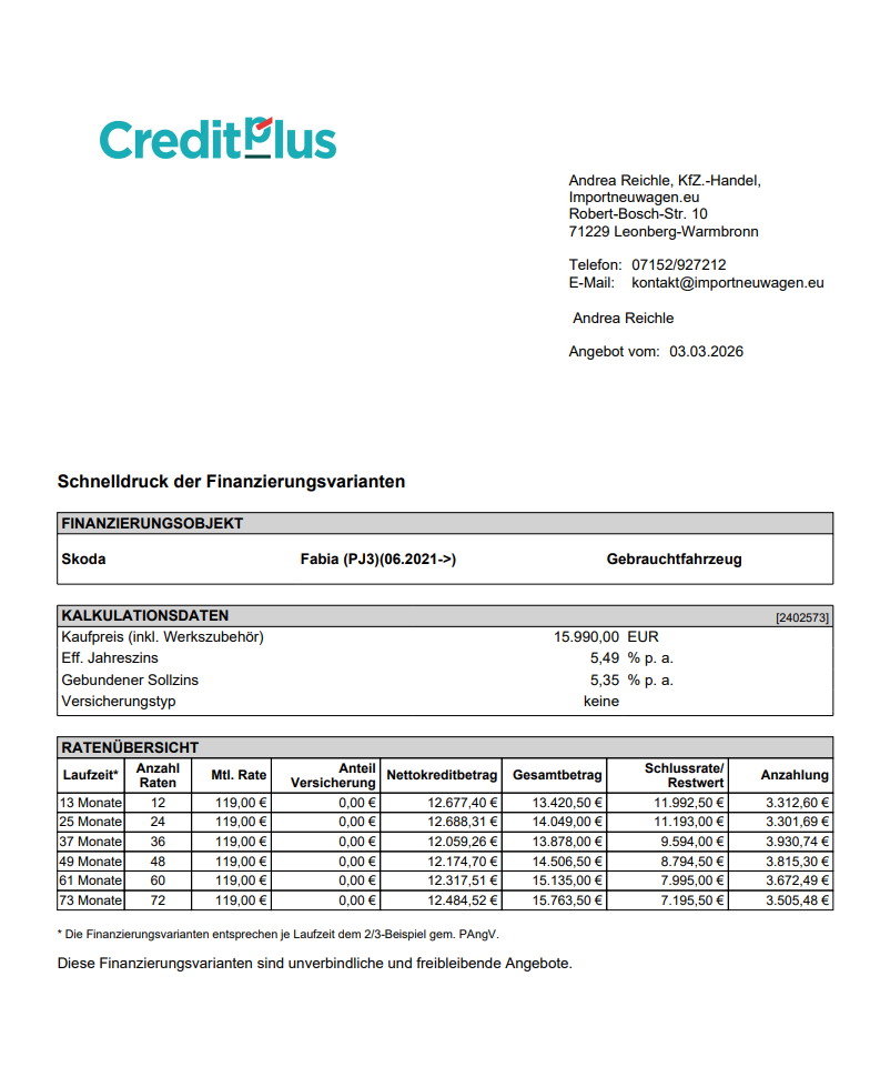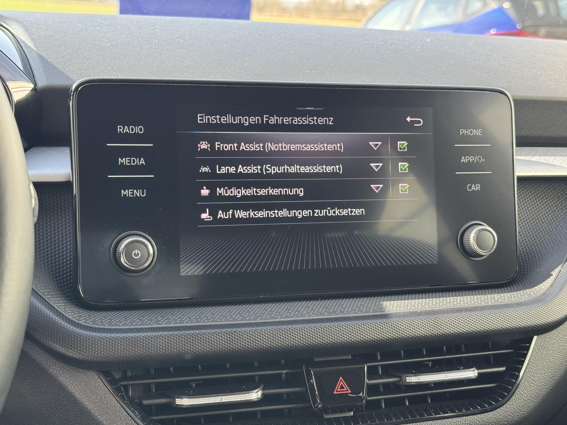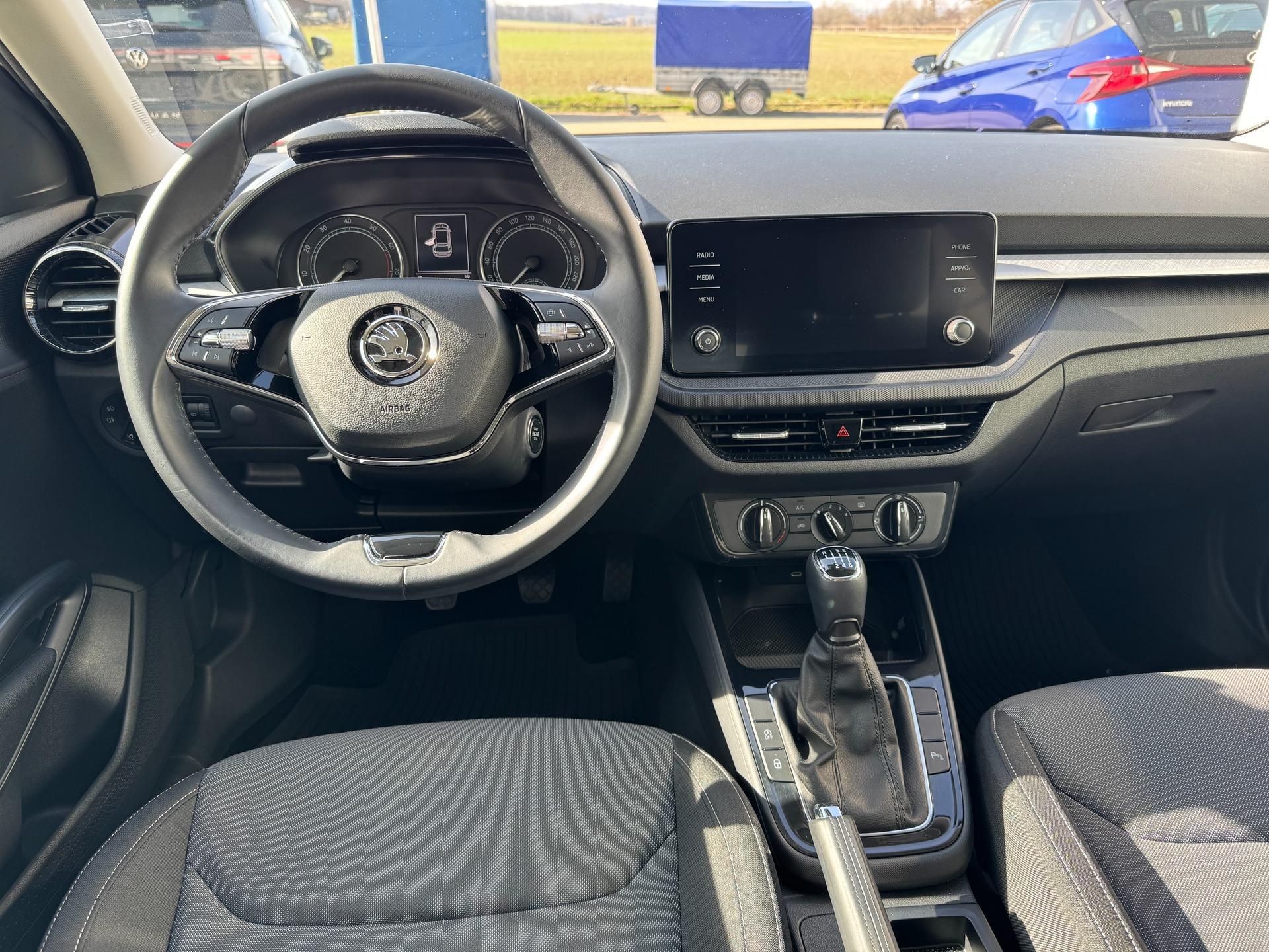 Gebrauchtwagen in gepflegtem Zustand!Hauptdaten:- unfallfrei- 2. Hand (Tageszulassung aufs Autohaus)- Skoda Herstellergarantie bis 18.11.2026 /100.000 km- Scheckheftgepfegt bei Skoda Vertragswerkstatt- letzte Inspektion bei 23.486 km in 11/2025 - Zustand: der Laufleistung und dem Alter entsprechende Gebrauchsspuren vorhanden, Stoßfänger hinten links und mittig KratzerSonderausstattung:+ Ambition Plus Paket (15“ Leichtmetallfelgen Rotare Aero Silber; Mittelarmlehne vorn inkl. Ablagefach; Nebelscheinwerfer; Parksensoren hinten)+ Anhängevorrichtung, abnehmbar+ Reserverad in Fahrbereifung (Stahl)+ Radio „Bolero“ mit 8“ Farbtouchscreen, 6 Lautsprechern, FM-Empfang, Bluetooth Freisprecheinrichtung, 2 USB-C-Schnittstellen (auch iPod/iPhone fähig) und Digitaler Radioempfang DAB++ „Sunset“ – Heckscheibe und hintere Seitenscheiben abgedunkelt + Parksensoren vorn und hinten+ DiebstahlwarnanlageSerienausstattung (in Auszügen): Zentralverriegelung mit Funkfernbedienung inkl. Komfortstartfunktion „Easy Start“; Elektrische Fensterheber vorn und hinten; Elektronische Wegfahrsperre; Start-Stopp-System mit Bremsenergierückgewinnung; Klimaanlage "Climatic"; Tempomat; Servolenkung, elektromechanisch, geschwindigkeitsabhängig geregelt; Dekoreinlagen "Ambition"; Außenspiegel elektrisch verstellbar und beheizbar; LED-Scheinwerfer für Abblend- und Fernlicht mit LED-Tagfahrlicht; Nebelschlussleuchte; 2 Innenleuchten vorn und hinten; "Make-up"-Spiegel in den Sonnenblenden; Rückbank geteilt umklappbar; Gepäckraumabdeckung; Gepäckraumbeleuchtung; 5 Türen; Kühlergrill schwarz mit Chromzierleiste; Radio „Swing“ mit 6,5“ Farbtouchscreen, 6 Lautsprechern, FM-Empfang, Bluetooth Freisprecheinrichtung und 2 USB-C-Schnittstellen (auch iPod/iPhone fähig); Stoßfänger, Außenspiegel und Türgriffe in Wagenfarbe; Tire Mobility Set; Wärmeschutzverglasung; 2-Speichen-Multifunktionslederlenkrad; Normalsitze vorn; Fahrersitz höhenverstellbar; Multifunktionsanzeige „MAXI DOT“; Lenksäule höhen- und längsverstellbar; Handschuhfach auf der Beifahrerseite; Stahlfelgen 15“ mit Radvollblenden; Reifen 185/65 R15; Haltegriffe in der Dachkonsole; Nichtraucherausführung; Aufbewahrungstaschen an den Rückseiten der Vordersitze; Sitze Stoff Dessin „Ambition"; 12V-Steckdose in der Mittelkonsole vorn; 2 Becherhalter vorn; Dachhimmel grau; Kennzeichenbeleuchtung; Ablagefach in der Dachkonsole; Ablagefach in den Türen vorn und hinten; Ablagefach in der Mittelkonsole; Bremsbelagverschleißanzeige; Manuelle Fernlichtschaltung; Manuelle Handbremse; Heckscheibenheizung; Heckscheibenwischer; Innenspiegel manuell abblendbar; Instrumentenbeleuchtung weiß; Kindersicherung an den hinteren Türen, manuell; Top Tether im Fond; Einfacher Ladeboden; Schaltknauf in Leder; Handbremsgriff in Leder; Manuelle Leuchtweitenregulierung; Manuelle Fahrlichtschaltung; Pedale in Kunststoff; Rückleuchten; Schalterbeleuchtung weiß; Scheibenwischer mit Intervallschaltung; 2 Funkklappschlüssel; Staub- und Pollenfilter; Analoge Tachoeinheit mit Drehzahlmesser und Geschwindigkeitsanzeige; 4 Verzurrösen im Gepäckraum; Warnblinkautomatik bei Vollbremsung; Sommerreifen; Digitaler Radioempfang DAB+; Müdigkeitserkennung; Care Connect (Laufzeit 1 Jahr); SmartLink