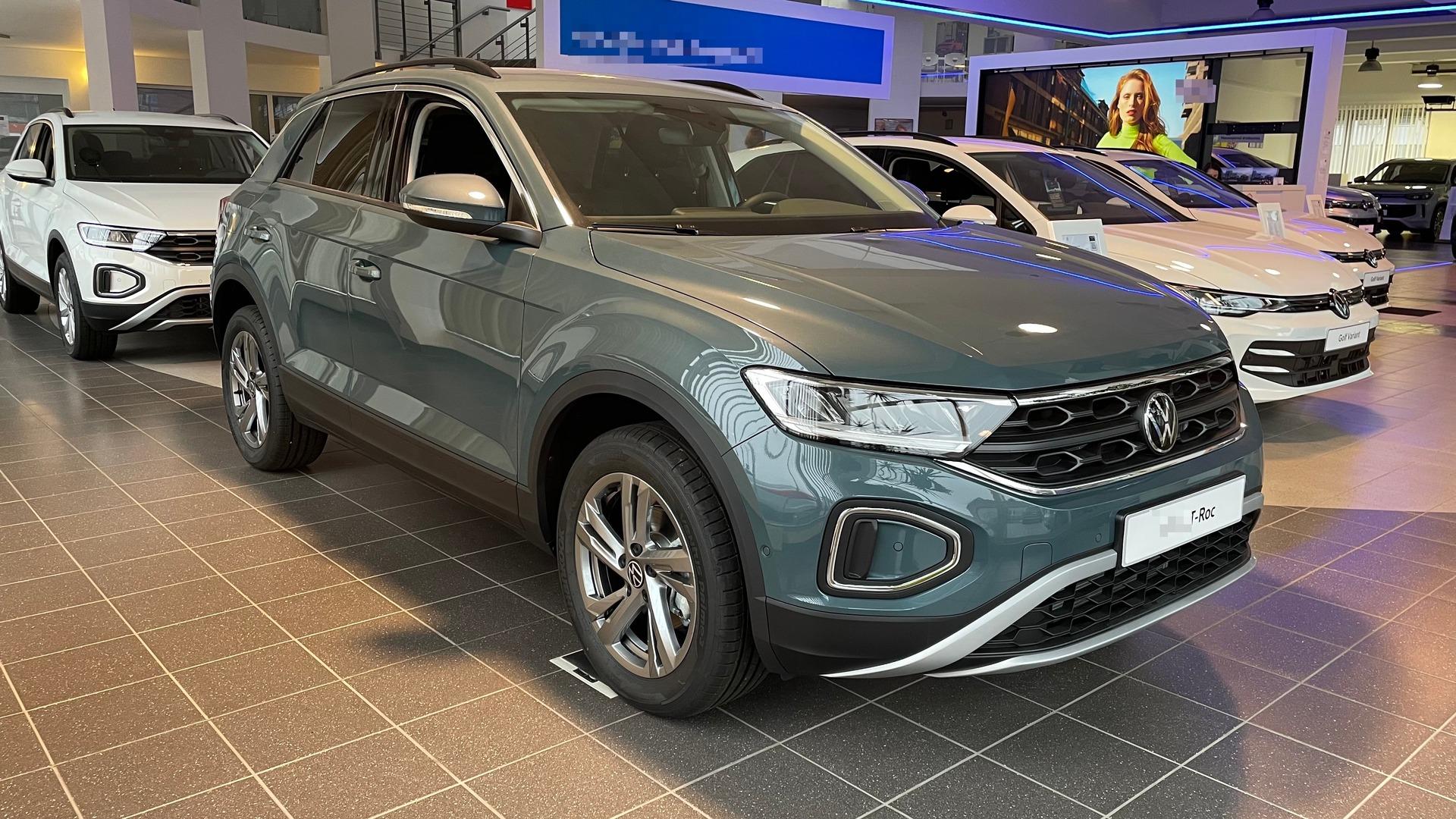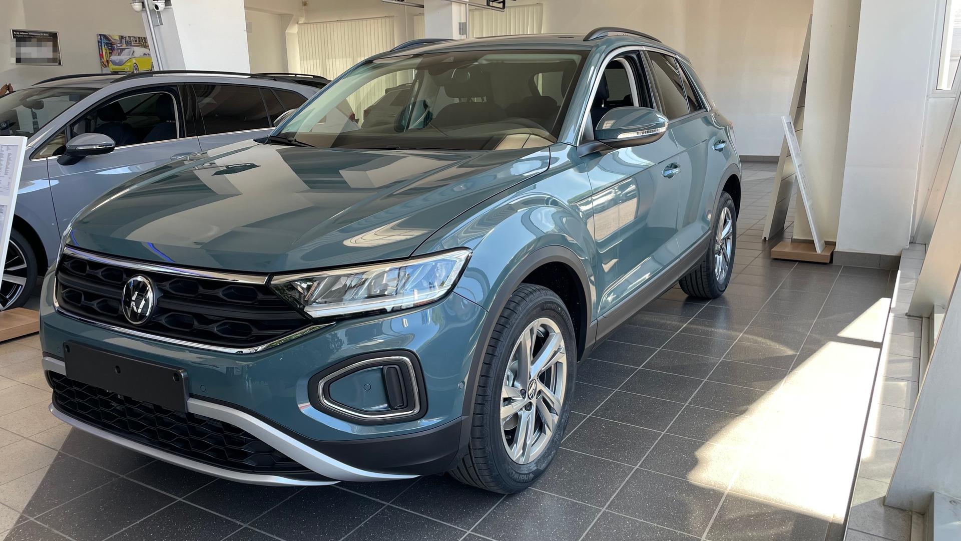 EU-NEUWAGEN mit Tageszulassung - kurzfristig verfügbar, Lieferzeit ca. 2 Wochen!Im Endpreis ist alles nötige bereits enthalten, es kommen keine weiteren Kosten auf Sie zu:- zulassungsfertige Dokumente- Überführungkosten frei Leonberg- deutsche Bedienungsanleitungen- Erste-Hilfe-Set (Verbandstasche, Warnweste, Warndreieck)- Fahrzeugaufbereitung- detaillierte Einweisung in das FahrzeugDer VW T-Roc Life 1.5 TSI OPF 110KW/150 PS 7-Gang-DSG, Euro 6eFarbe: Petroleum Blue Metallic Innenausstattung: Titanschwarz-CeramiqueIm Kaufpreis enthaltene Sonderausstattung:+ Klimaanlage "Air Care Climatronic" mit 2-Zonen-Temperaturregelung und Aktivkombifilter+ Winterpaket (Sitzheizung vorn; Waschwasserstandsanzeige)+ Sitzkomfort-Paket (Lendenwirbelstützen vorn; Beifahrersitzlehne komplett umklappbar)+ Leichtmetallfelgen „Valencia“ 7Jx17, Reifen 215/55 R17+ Radio „Ready 2 Discover“ mit 8“ Farbtouchscreen, 6 Lautsprechern, FM-Empfang, Bluetooth Freisprecheinrichtung, 2 USB-C-Schnittstellen (auch iPod/iPhone fähig), „Streaming & Internet“, Interner Festplatte, App-Connect inkl. Wireless App-Connect (für Apple CarPlay und Android Auto), Näherungssensor und Gestensteuerung, Möglichkeit der nachträglichen Aktivierung der Navigationsfunktion über We Upgrade+ 3-Speichen-Multifunktionslederlenkrad mit „Tiptronic“, beheizbar+ Reserverad, platzsparend (Stahl)Serienausstattung (in Auszügen): Regensensor; Automatische Fahrlichtschaltung inkl. „Coming Home“ und „Leaving Home“ Funktion; Tire Mobility Set; LED-Scheinwerfer für Abblend- und Fernlicht mit LED-Tagfahrlicht; ESP; ASR; ABS; EDS; MSR; Bremsassistent; Multikollisionsbremse; Komfortsitze vorn; Vordersitze höhenverstellbar; Schaltknauf in Leder; 12V-Steckdose in der Mittelkonsole vorn; Berganfahrassistent; ISOFIX im Fond; Rückbank geteilt umklappbar, mit Mittelarmlehne und Durchladefunktion; Außenspiegel elektrisch verstellbar, beheizbar und anklappbar, mit Beifahrerspiegelabsenkung, auf der Fahrerseite asphärisch; Automatisch abblendender Innenspiegel; Leichtmetallfelgen "Johannesburg" 7Jx17; Reifen 215/55 R17; Kennzeichenbeleuchtung in LED-Technik; Front-Airbags für Fahrer und Beifahrer, Beifahrerairbag deaktivierbar; Parklenkassistent „Park Assist“ inkl. ParkPilot; Mittelarmlehne vorn mit Ablagefach und 2 Luftausströmern für die Fondpassagiere; Handschuhfach auf der Beifahrerseite, beleuchtet; Aktive Geschwindigkeitsregelanlage, Automatische Distanzregelung ACC "stop&go" bis 210 km/h inkl. Umfeldbeobachtungssystem "Front Assist" und City-Notbremsfunktion; Fußgängererkennung; Spurhalteassistent "Lane Assist"; Start-Stopp-System mit Bremsenergierückgewinnung; Verstauschublade unter dem Beifahrersitz; Sitze Stoff Dessin "Life"; Rückleuchten in LED-Technik, dunkelrot; Nebelschlussleuchte; Servolenkung, elektromechanisch, geschwindigkeitsabhängig geregelt; Elektronische Wegfahrsperre; Stoßfänger, Außenspiegel und Türgriffe in Wagenfarbe; Dachhimmel grau; Zentralverriegelung mit Funkfernbedienung; Schlüsselloses Schließ- und Startsystem „Keyless Access“; Elektrische Fensterheber; Gepäckraumbeleuchtung; Gepäckraumabdeckung; Nichtraucherausführung; Kühlergrill schwarz mit Chromzierleisten; Chromzierleiste an der Dachlinie; Doppelter Ladeboden; Ablagefach in den Türen vorn und hinten; Ablagefach in der Mittelkonsole vorn; Aufbewahrungstaschen an den Rückseiten der Vordersitze; 2 Becherhalter vorn und hinten; Scheibenbremsen vorn und hinten; Bremsbelagverschleißanzeige; Automatische Fernlichtschaltung "Light Assist"; Digital Cockpit; Warnblinkautomatik bei Vollbremsung; Notrufsystem eCall; We Connect Plus (Laufzeit 1 Jahr); Digitaler Radioempfang DAB+; Sommerreifen; App Connect inkl. Wireless App Connect (für Apple CarPlay); Müdigkeitserkennung; Rückfahrkamera „Rear Assist“; Heckscheibe und hintere Seitenscheiben abgedunkelt; Verkehrszeichenerkennung; Telefonschnittstelle mit induktiver Ladefunktion