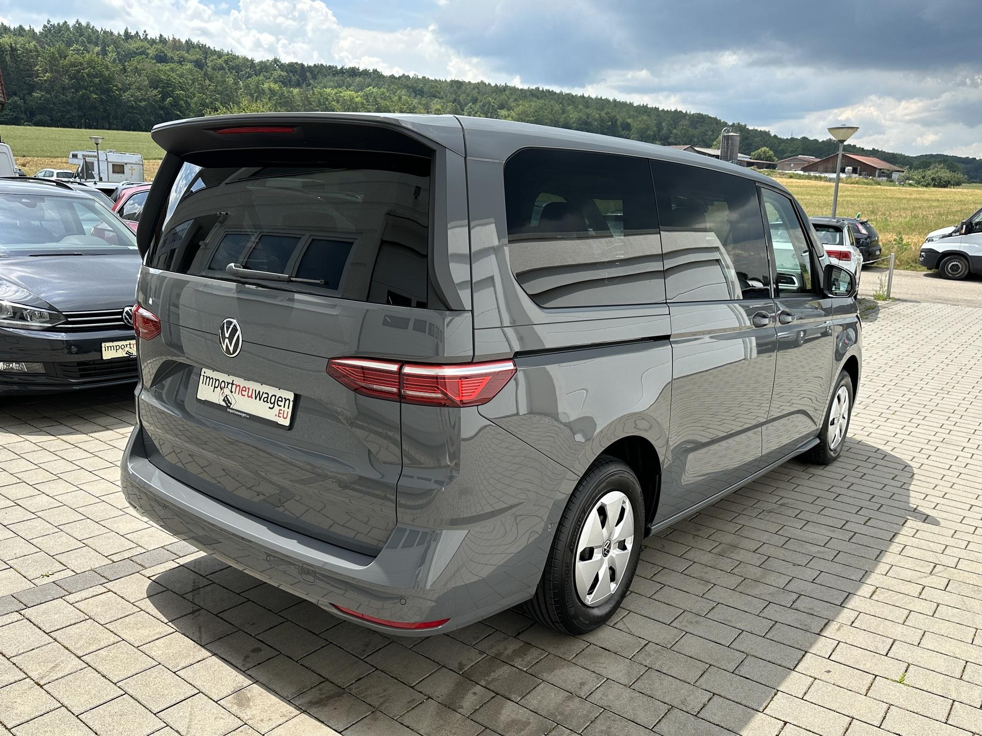 EU-NEUWAGEN - kurzfristig verfügbar, Lieferzeit ca. 1 Woche! Der VW T7 Multivan LÜ 2.0 TDI SCR 110 KW/150 PS 7-Gang-DSGFarbe: Pure Grey Innenausstattung: Raven-SandwickIm Kaufpreis enthaltene Sonderausstattung:+ Klimaanlage "Air Care Climatronic" mit 3-Zonen-Temperaturregelung und zusätzlichem Bedienteil im Fahrgastraum+ Heckscheibe und hintere Seitenscheiben abgedunkelt, 65% Lichtabsorption+ 7-Sitzer-Version (Sitzkonfiguration 2-2-3) – 1. Sitzreihe mit Einzelsitz auf der Beifahrerseite, 2. Sitzreihe 2 Einzelsitze Vis-à-Vis, 3. Sitzreihe 3 Einzelsitze inkl. 4 Armlehnen (abnehm- und umsteckbar), in der 2. Sitzreihe inkl. Klapptische an den Rückseiten der Sitze in der 2. Sitzreihe+ Park Paket Basic (Parklenkassistent „Park Assist“ inkl. ParkPilot; Rückfahrkamera „Rear Assist“)+ Armlehnen an den Vordersitzen (beidseitig) inkl.Lendenwirbelstützen vorn, elektrisch einstellbar und Klapptischen an den Rückseiten der Vordersitze+ Volkswagen Original Textilfußmatten+ Multifunktionstisch mit 3 Becherhaltern+ Schubladen unter den äußeren Sitzen im Fahrgastraum inkl. 2 Abfallbehälter+ Anhängevorrichtung anklappbar, mit elektrischer Entriegelung+ Sitzheizung vornSerienausstattung (in Auszügen): Außenspiegel elektrisch verstellbar, beheizbar und anklappbar; Kühlergrill in Hochglanzschwarz; Vorbereitung für Dachträgerbefestigung; Nebelschlussleuchte; Reifen 215/65 R16; Stahlfelgen 6,5Jx16 mit Radvollblenden; Türgriffe und Stoßfänger in Wagenfarbe; Kennzeichenbeleuchtung in LED-Technik; Schiebetür im Fahrgastraum links; Schiebetür im Fahrgastraum rechts; Berganfahrassistent; Elektrische Fensterheber; Adaptive Cruise Control ACC – aktive Geschwindigkeitsregelanlage, automatische Distanzregelung „stop&go“ bis 210km/h inkl. Umfeldbeobachtungssystem „Front Assist“ mit City-Notbremsfunktion; Fußgänger- und Radfahrererkennung; Geschwindigkeitsbegrenzer inkl. Intelligent Speed Assist; Klimaanlage "Climatic" im Fahrerhaus; Radio „Ready 2 Discover“ mit 10“ Farbtouchscreen, 8 Lautsprechern, FM-Empfang, Bluetooth Freisprecheinrichtung, 2 USB-C-Schnittstellen (auch iPod/iPhone fähig), App Connect inkl. Wireless App Connect (für Apple CarPlay und Android Auto), Interner Festplatte, Verkehrszeichenerkennung und Digitaler Radioempfang DAB+, Möglichkeit der nachträglichen Aktivierung der Navigationsfunktion über We Upgrade; Zentralverriegelung mit Funkfernbedienung inkl. Komfortstartfunktion „Keyless Start“; 2 Funkschlüssel; Ablagefächer in den Vordertüren; Ablagefächer im Armaturenbrett; 2 Becherhalter im Fahrerhaus; 3-Speichen-Multifunktionslederlenkrad mit „Tiptronic“; LED-Scheinwerfer für Abblend- und Fernlicht mit LED-Tagfahrlicht; Heckscheibenheizung; Kindersicherung im Fahrgastraum, elektrisch, vom Fahrersitz aus bedienbar; Kopfstützen vorn, höhenverstellbar; Kopfstützen hinten, höhenverstellbar; Warnblinkautomatik bei Vollbremsung; Start-Stopp-System mit Bremsenergierückgewinnung; Servolenkung, elektromechanisch, geschwindigkeitsabhängig geregelt; 60l Kraftstofftank; Staub- und Pollenfilter; Müdigkeitserkennung; We Connect Plus (Laufzeit 1 Jahr); Notrufsystem eCall; Dekoreinlagen „Scale Light Grey“; Elektronische Handbremse inkl. Auto Hold; Innenspiegel manuell abblendbar; Manuelle Leuchtweitenregulierung; Automatische Fahrlichtschaltung; Pedale in Kunststoff; Rückleuchten in LED-Technik; Scheibenwischer mit Intervallschaltung; Digital Cockpit; Manuelle Fernlichtschaltung; Scheibenbremsen vorn und hinten; Schalterbeleuchtung weiß; Reserverad in Fahrbereifung (Stahl); Sommerreifen; 5-Sitzer-Version (Sitzkonfiguration 2-0-3) – 1. Sitzreihe mit Einzelsitz auf der Beifahrerseite, 2. Sitzreihe ohne Sitze, 3. Sitzreihe 3 Einzelsitze; Spurhalteassistent "Lane Assist"; Ausweichunterstützung und Abbiegeassistent; Ausströmer im Boden im Fahrgastraum; Umfeldbeleuchtung im Türbereich; Diebstahlwarnanlage mit Innenraumüberwachung, Back-up-Horn und Abschleppschutz; Garantieverlängerung auf 4 Jahre/120.000 km maximale Gesamtlaufleistung; „Bulli“-Plakette inkl. Entfall der Schriftzüge der Motor- und Modellbezeichnung; Ablagefächer im Fahrgastraum; Haltegriffe an der B-Säule; ParkPilot – Parksensoren vorn und hinten; Spurwechselassistent „Side Assist“ inkl. "Blind Spot Detection", Ausparkassistent und Ausstiegswarner; Car2X