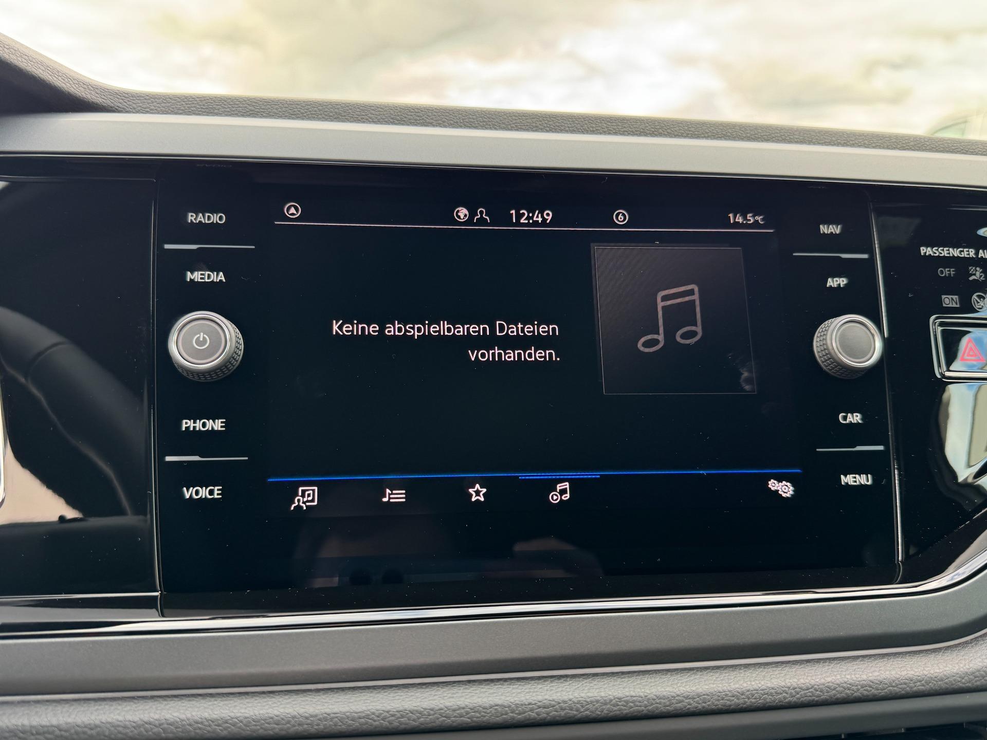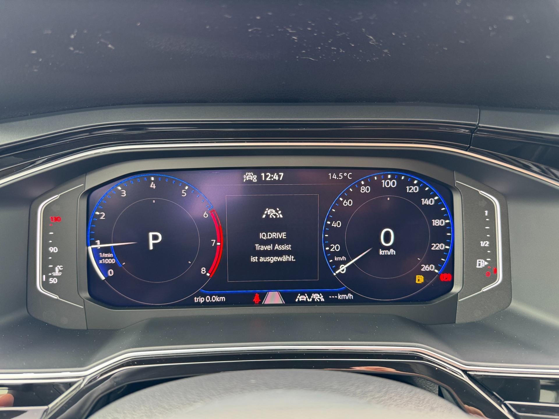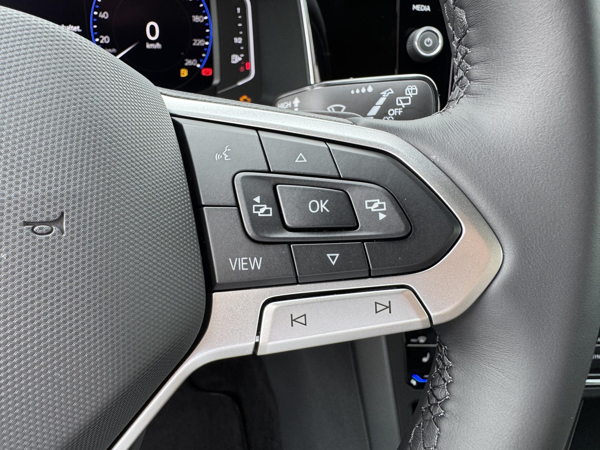 Serienausstattung (in Auszügen): Radio „Ready 2 Discover“ mit 8“ Farbtouchscreen, 6 Lautsprechern, FM-Empfang, Bluetooth Freisprecheinrichtung, 2 USB-C-Schnittstellen (auch iPod/iPhone fähig), „Streaming & Internet“, Interner Festplatte, Näherungssensor und Gestensteuerung, Möglichkeit der nachträglichen Aktivierung der Navigationsfunktion über We Upgrade; App Connect inkl. Wireless App Connect (für Apple CarPlay); Automatische Fahrlichtschaltung inkl. „Coming Home“ und „Leaving Home“ Funktion; Reserverad, platzsparend (Stahl); IQ.LIGHT LED-Matrix-Scheinwerfer für Abblend- und Fernlicht mit dynamischer Leuchtweitenregulierung, dynamischer Fernlichtregulierung „Dynamic Light Assist“, LED-Tagfahrlicht und Lichtleiste zwischen den Scheinwerfern; ESP; ASR; ABS; EDS; MSR; Bremsassistent; Multikollisionsbremse; Vordersitze höhenverstellbar; Schaltknauf in Leder; Handbremsgriff in Leder; 12V-Steckdose in der Mittelkonsole vorn; Berganfahrassistent; ISOFIX im Fond und für den Beifahrersitz vorn; Rückbank geteilt umklappbar; Lenksäule höhen- und längsverstellbar; Klimaanlage „Air Care Climatronic“ mit Aktiv-Kombifilter und 2-Zonen-Temperaturregelung; Kopfairbags vorn und hinten; Seitenairbags vorn; Center-Airbag vorn; "Make-up"-Spiegel in den Sonnenblenden, beleuchtet; Außenspiegel elektrisch verstellbar, beheizbar und anklappbar, mit Beifahrerspiegelabsenkung, auf der Fahrerseite asphärisch; Mittelarmlehne vorn, mit Ablagefach; Handschuhfach auf der Beifahrerseite; Wärmeschutzverglasung; Dachreling schwarz; Warnleuchte „Sicherheitsgurt nicht angelegt“ vorn und hinten; Reifendruckkontrollsystem; Spurhalteassistent "Lane Assist"; Schlüsselloses Schließ- und Startsystem „Keyless Access“; Elektrische Fensterheber; Gepäckraumbeleuchtung; Gepäckraumabdeckung; Raucherausführung; Doppelter Ladeboden; Aufbewahrungstaschen an den Rückseiten der Vordersitze; Scheibenbremsen vorn und hinten; Notrufsystem eCall; Digitaler Radioempfang DAB+; Regensensor; 2 Funkklappschlüssel; Staub- und Pollenfilter; Digital Cockpit; 4 Verzurrösen im Gepäckraum; Warnblinkautomatik bei Vollbremsung; We Connect Plus (Laufzeit 1 Jahr); Sommerreifen; ParkPilot – Parksensoren vorn und hinten; Müdigkeitserkennung; Waschwasserstandanzeige; Ambientebeleuchtung; Fußraumbeleuchtung vorn; Chrompaket; R-Line Paket (Kühlergrill schwarz mit Chromzierleiste und „R-Line“-Logo; Stoßfänger im „R“-Styling; R-Line Seitenschweller; "R-Line"-Designleiste an den Seitenteilen vorn; „R-Line“-Einstiegsleisten vorn; Dachhimmel schwarz; Pedale in Edelstahl; 3-Speichen-Multifunktionslederlenkrad mit „R-Line“-Logo und „Tiptronic“; Sportsitze vorn; Sitze Stoff Dessin „R-Line“, Sitzwangen in Mikrovlies „Art Velours“; „R-Line“-Logo an den Vordersitzen; Lendenwirbelstützen vorn; Dekoreinlagen "Grey Anondized Matt“; LED-Nebelscheinwerfer mit statischem Kurvenfahrlicht); IQ.DRIVE Paket (Automatische Distanzregelung ACC bis 210 km/h inkl. Geschwindigkeitsbegrenzer und Umfeldbeobachtungssystem „Front Assist“ mit City-Notbremsfunktion; Fußgängererkennung; Fahrassistent „Travel Assist“); Ablagefach unter dem Fahrersitz; Ablagefach in der Dachkonsole; 2 USB-C-Ladebuchsen an der Mittelkonsole hinten; Rückfahrkamera „Rear Assist“; Heckscheibe und hintere Seitenscheiben abgedunkelt; Telefonschnittstelle mit induktiver Ladefunktion; Verkehrszeichenerkennung