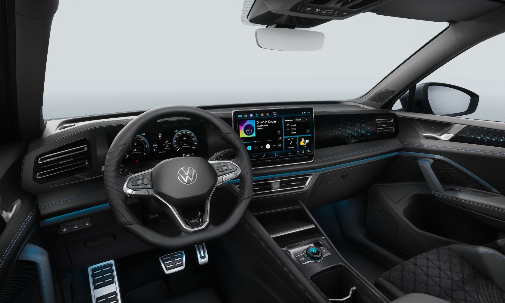 Serienausstattung (in Auszügen): Radio „Ready 2 Discover“ mit 12,9“ Farbtouchscreen, 8 Lautsprechern, FM-Empfang, Bluetooth Freisprecheinrichtung, 2 USB-C-Schnittstellen (auch iPod/iPhone fähig), Wired und Wireless App Connect (für Apple CarPlay und Android Auto), „Streaming & Internet“, Interner Festplatte und Digitaler Radioempfang DAB+, Möglichkeit der nachträglichen Aktivierung der Navigationsfunktion über We Upgrade; Regensensor; Automatische Fahrlichtschaltung inkl. „Coming Home“ und „Leaving Home“ Funktion; Tire Mobility Set; LED-Plus-Scheinwerfer für Abblend- und Fernlicht mit dynamischer Leuchtweitenregulierung, dynamischem Kurvenfahrlicht, Schlechtwetterlicht, Abbiegelicht und LED-Tagfahrlicht inkl. 3D-LED-Rückleuchten mit Lichtband; ESP; ASR; ABS; EDS; MSR; Bremsassistent; Multikollisionsbremse; ergoActive Sportsitz auf der Fahrerseite mit Sitzneigungs-, Sitzhöhen-, Längsposition-, Lehneneinstellung und Oberschenkelauflage längs verschiebbar; Lendenwirbelstützen vorn, pneumatisch einstellbar; Massagefunktion vorn; Sportsitz auf der Beifahrerseite vorn; Beifahrersitz höhenverstellbar; Klimaanlage "Air Care Climatronic" mit 3-Zonen-Temperaturregelung, Aktiv-Kombifilter und separaten Bedienelementen im Fond; Außenspiegel elektrisch verstellbar, beheizbar und anklappbar, mit Beifahrerspiegelabsenkung und Umfeldbeleuchtung; Automatisch abblendender Innenspiegel; Aktive Geschwindigkeitsregelanlage, Automatische Distanzregelung ACC "stop&go" bis 210 km/h inkl. Geschwindigkeitsbegrenzer mit vorausschauender Regelung und Notbremsassistent "Front Assist" mit Fußgänger- und Radfahrererkennung;  Spurhalteassistent "Lane Assist"; Start-Stopp-System mit Bremsenergierückgewinnung; Automatische Fernlichtschaltung "Light Assist"; Digital Cockpit Pro; Warnblinkautomatik bei Vollbremsung; Notrufsystem eCall; We Connect Plus (Laufzeit 1 Jahr); Sommerreifen; Center-Airbag vorn; Parkassistent „Park Assist Plus“ inkl. ParkPilot; Rückfahrkamera „Rear Assist“; Car2X; Verkehrszeichenerkennung; Ambientebeleuchtung Plus; R-Line Paket (Kühlergrill in Hochglanzschwarz mit Lichtleiste und „R-Line“-Logo; R-Line Stoßfänger und R-Line Schwellerverbreiterungen; Radhausverbreiterungen in Hochglanzschwarz; "R-Line"-Logo an den Türen vorn; Dachhimmel schwarz; Pedale in Edelstahl; 3-Speichen-Multifunktionssportlederlenkrad mit „Tiptronic“ und „R-Line“-Logo; Sitze Stoff Dessin „R-Line“, Sitzwangen in Mikrofaser "ArtVelours Eco"; „R-Line“-Logo an den Vordersitzen; Einstiegsleisten vorn in Aluminium mit „R-Line“-Logo); Chromzierleisten um die Seitenscheiben; Spurwechselassistent „Side Assist“ inkl. Ausparkassistent und Ausstiegswarnung; Kreuzungsassistent